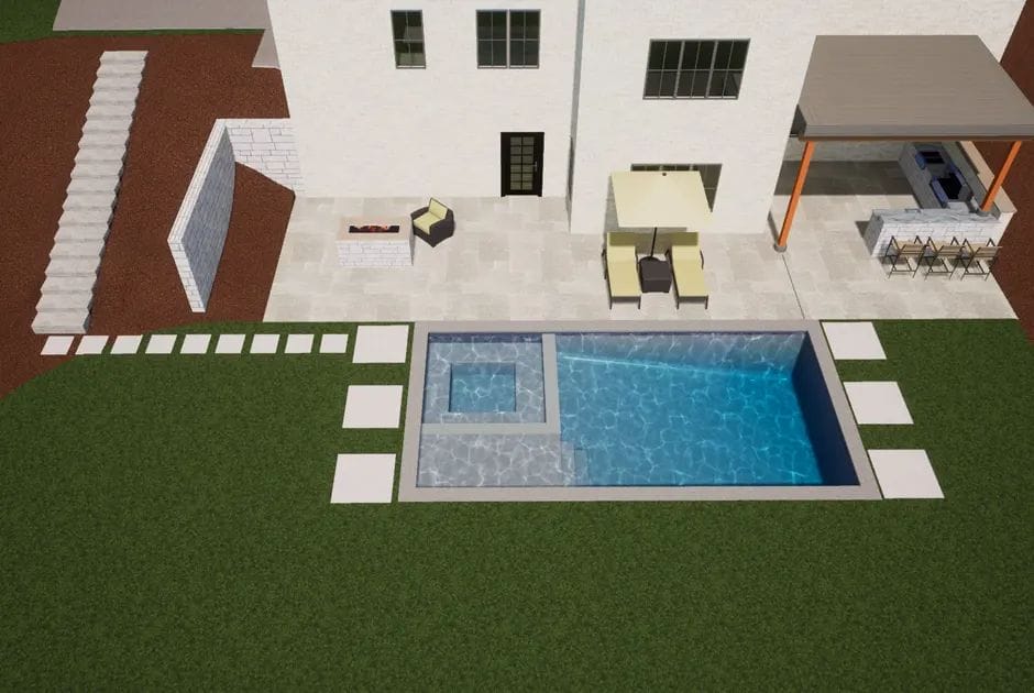 We installed a sleek fire pit alongside the pool, creating a cozy and inviting feature for outdoor gatherings. The fire pit is surrounded by a comfortable seating area, offering a perfect spot to relax and enjoy the warmth, whether for casual evenings or hosting guests.